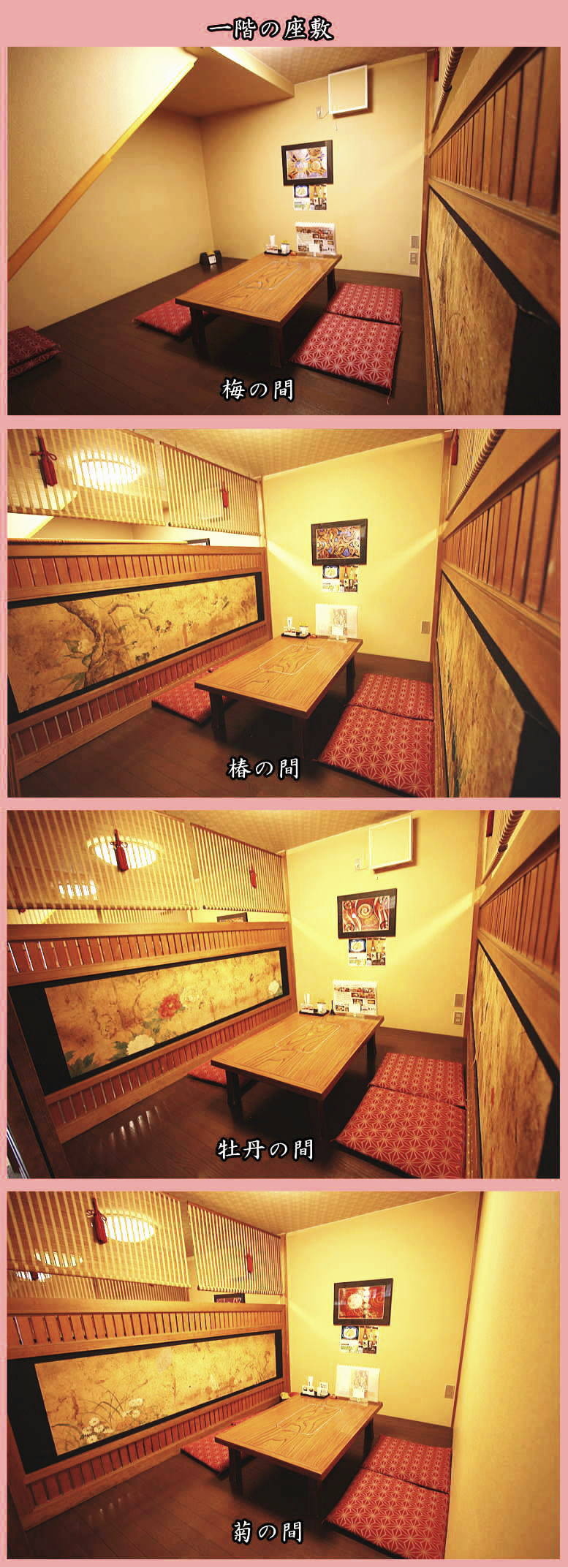 座布団の4〜5人用小上りが4部屋。