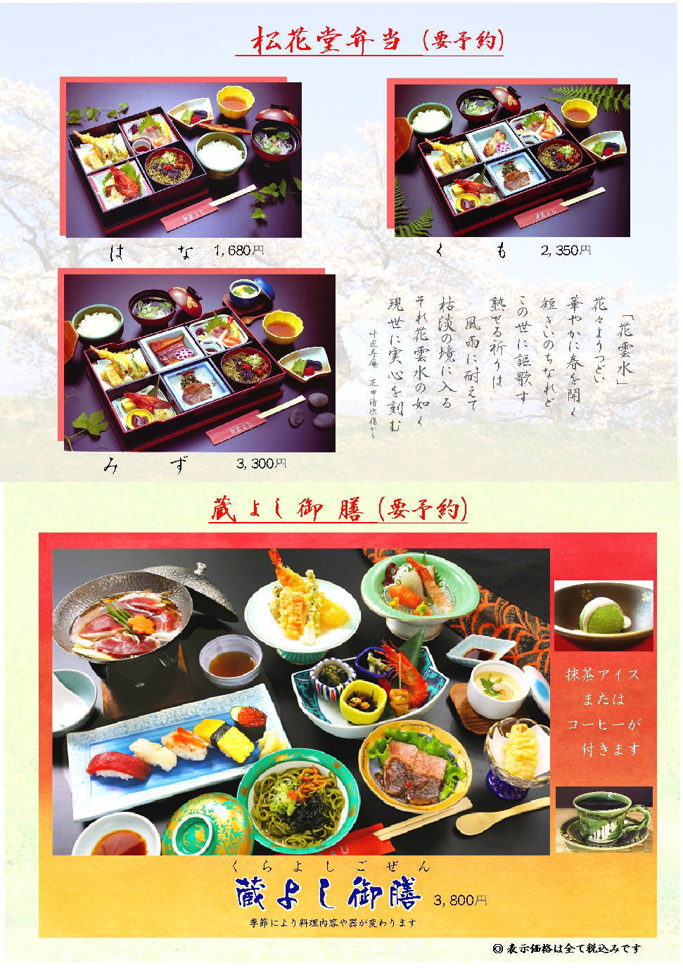御会合などにおすすめの 松花堂弁当 と 蔵よし御膳 《要予約》
