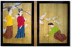 ![]() 入 口 扉 天保の間にある年号 二階の襖絵 ![]() 階段上の鎧 |